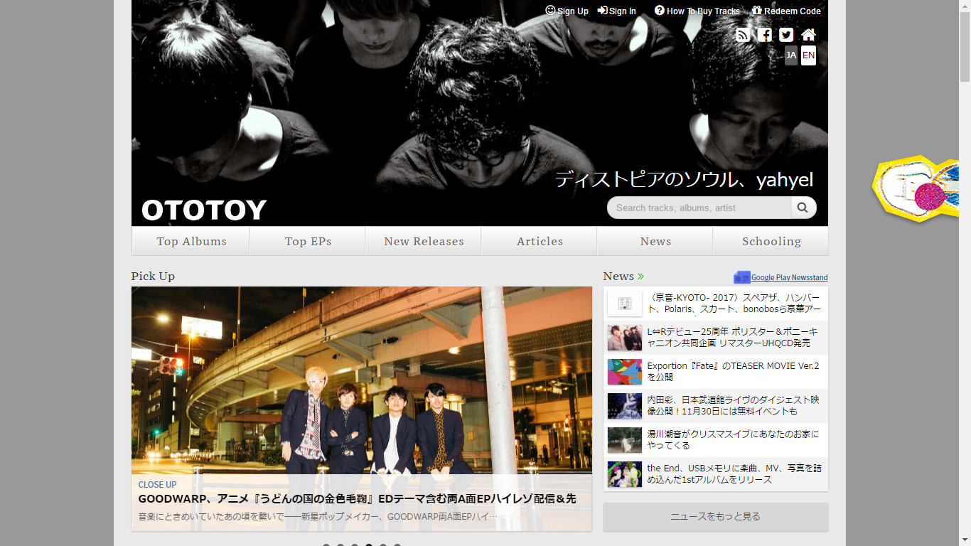 วันนี้เราเลยมาเสนอเว็บดาวน์โหลดเพลงดิจิตัลแบบถูกกฎหมายซึ่งโหลดง่าย แถมบางทีวงบางวงปล่อยให้โหลดฟรีอีกนัน้คือเว็บไซต์ OTOTOY (http://ototoy.jp) ครับ