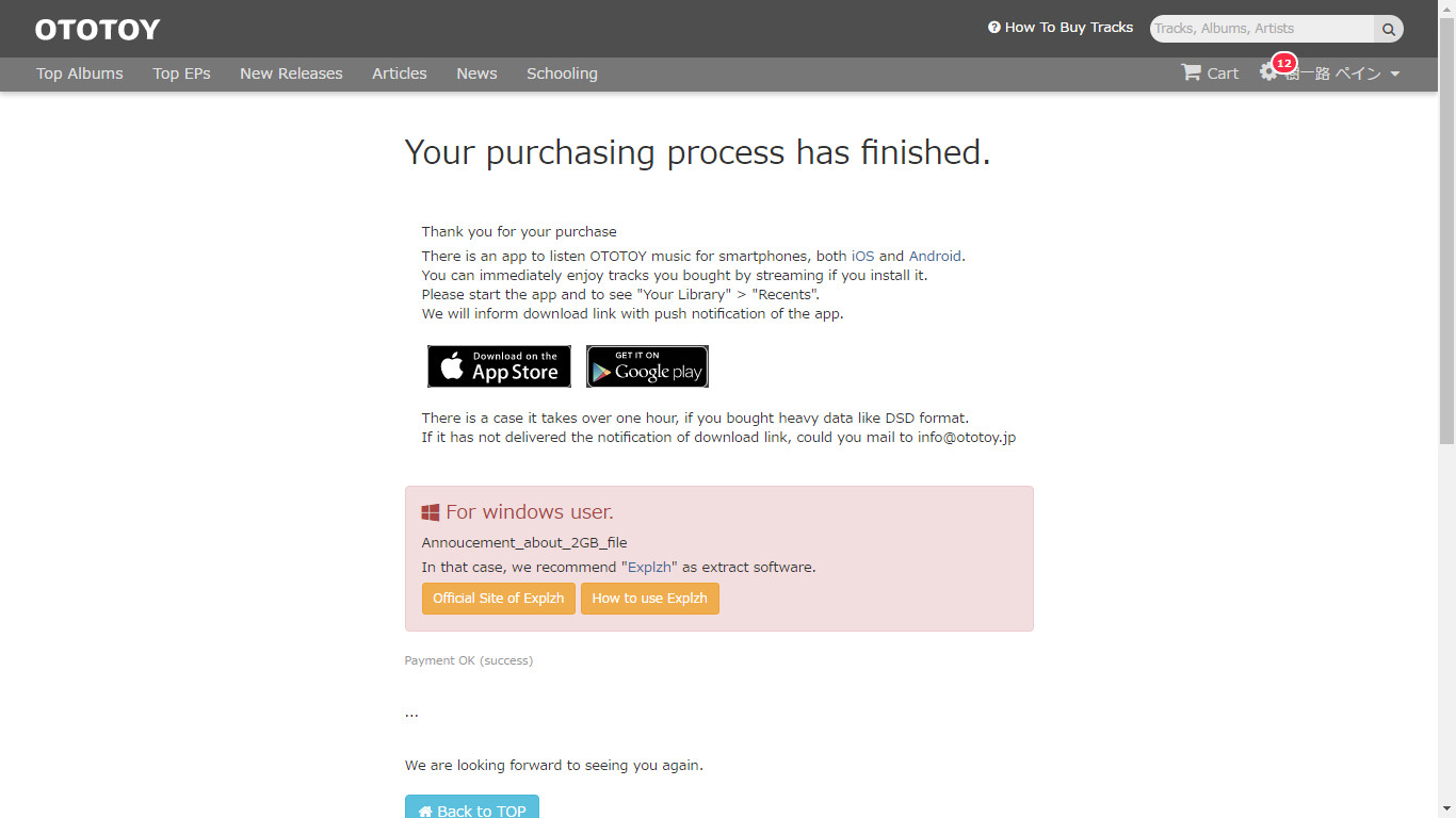 เมื่อเสร็จแล้วทาง OTOTOY ก็จะส่งเมลพร้อมลิงค์โหลดไปให้ในอีเมลครับผม