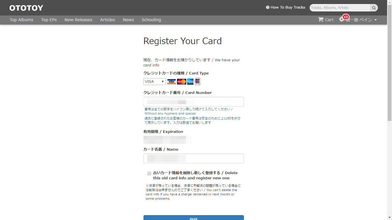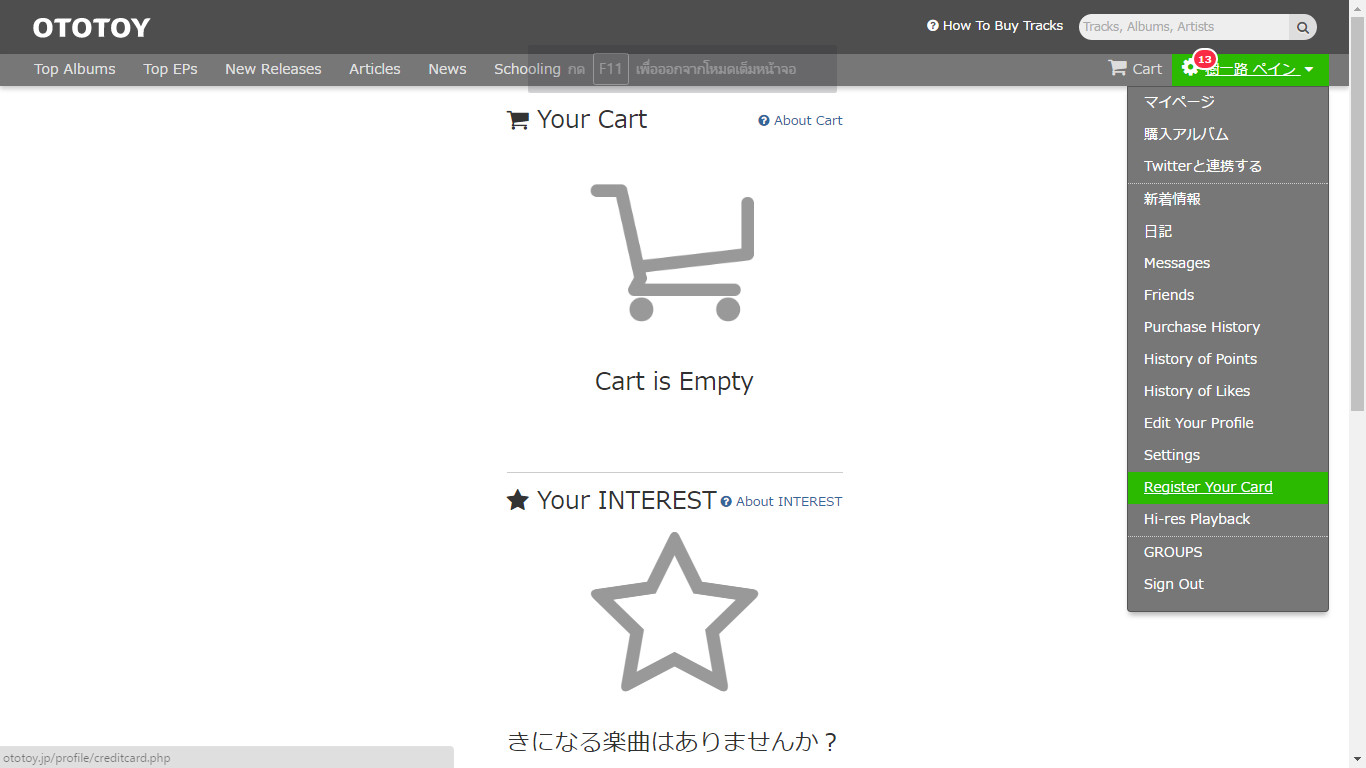 สิ่งที่ทำให้ OTOTOY ง่าย กว่า iTune คือการผูกบัตรครับ เราสามารถผูกบัตรเครดิตหรือเดบิตก็ได้ อย่างแรกคือเข้าไปที่ Register Your Card ครับ